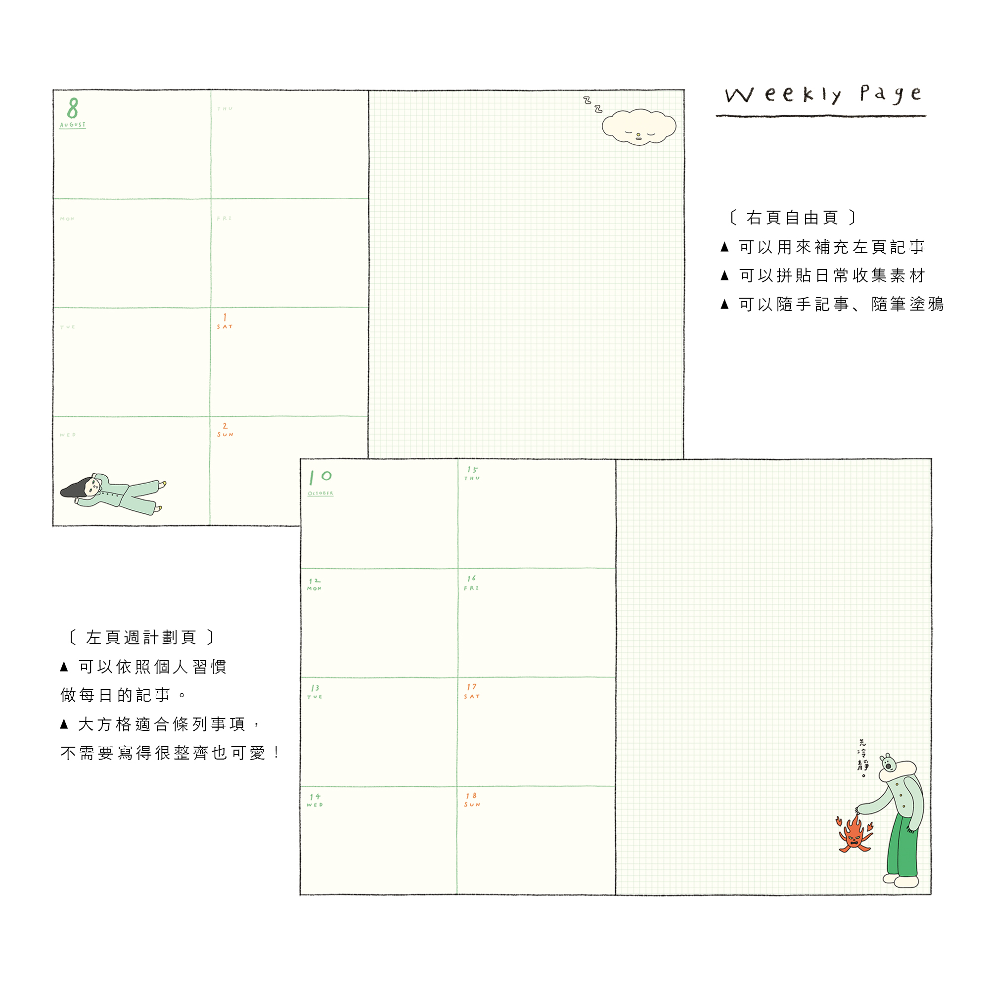 右頁是大範圍的自由書寫空間,