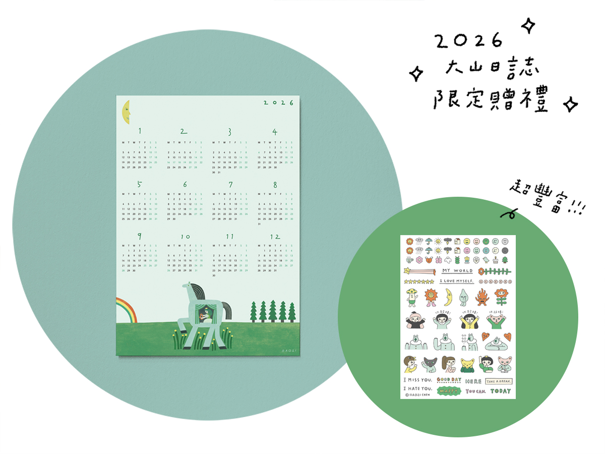 ★ 每本日誌都會附贈〈 2026日誌年曆海報 〉和〈 大山日誌透明貼紙3號 〉各一張。