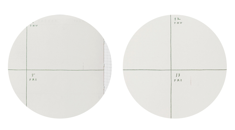 在周計畫頁某兩頁空白處留下了非常淺小的印痕 (如下圖所示)